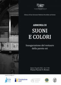 Novara - Sabato 30 aprile alle 17 si terrà l’inaugurazione dei restauri della parete orientale della chiesa di San Giovanni Battista Decollato ad fontes di Novara. Si tratta di un articolato insieme di complessi interventi, partiti dalla necessità di restaurare lo strumento musicale e la cantoria su cui si appoggia per poi coinvolgere la parete su cui l’organo insiste, che ha rivelato un importante affresco del XVI secolo, rimasto nascosto sotto gli intonaci per secoli, seguendo le vicende storiche della chiesa.