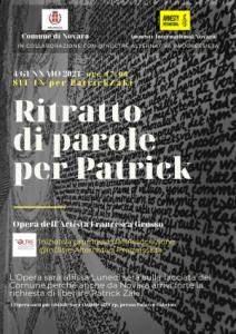Novara - Lunedì 4 gennaio alle ore 17, dinanzi alla sede municipale, in via Rosselli 1, si svolgerà un sit-in a favore di Patrick Zaki, promosso da Comune di Novara e Amnesty International. Come previsto dall’ordine del giorno approvato nel corso dell’ultimo consiglio comunale, insieme all’impegno di collaborare con il Comune di Bologna affinché venga data a Patrick la cittadinanza onoraria italiana, Comune di Novara, con Amnesty International,esporrà una riproduzione dell’opera di Francesca Grosso “Ritratto di parole dedicato a Zaki”, opera composta dalle parole della lettera scritta dai giovani di InOltre Alternativa Progressista. Una lettera tradotta in 16 lingue da InOltre (Alternativa Progressista) in collaborazione con Amnesty, inviata in 199 copie (una per ogni giorno di prigionia) al carcere di Tora, dove è rinchiuso Patrick Zaki, e firmata da esponenti del mondo accademico e culturale, da politici internazionali e da molte associazioni.
