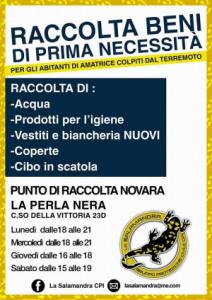Novara - La Salamandra, gruppo di protezione civile di CasaPound Italia, ha istituito una raccolta di generi di prima necessità per le zone colpite dal sisma di questa notte. Si raccolgono: Acqua, Prodotti per l'igiene, Vestiti e biancheria (nuovi), Coperte e Cibo in scatola. Per Novara, il punto di raccolta è istituito presso la sede cittadina dell'associazione in Corso della Vittoria 23D. Da sabato 27 agosto (compreso) con i seguenti orari: Lunedì 18-21; Mercoledì 18-21; Giovedì 15-18; Sabato 15-19. Info: Casa Pound Italia Novara, cell. 342 5314960 - casapoundnovara@yahoo.it - www.casapoundpiemonte.org - www.casapounditalia.org.