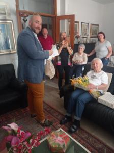Ha tre nipoti e due pronipoti. È una donna lucida, allegra e molto in gamba. A portare gli auguri da parte dell’amministrazione comunale il presidente del consiglio Edoardo Brustia.