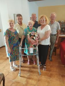 Novara - Festeggiamenti speciali ieri, lunedì 26 agosto, per i 105 anni di Maria Angela Grazianetti, nella foto con i figli Franco, Giovanni e Roberto. A portare gli auguri del Sindaco e della città intera c'era la consigliera comunale Maria Luisa Astolfi.