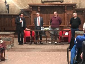 Novara - Presentazione ufficiale di “Un Dae per Ricky” la sera di venerdì 4 ottobre nell'arengo del Broletto con numerose autorità comunali come il sindaco Alessandro Canelli, l'assessore allo Sport Marina Chiarelli e la presidente del Coni provinciale Rosalba Fecchio. Come spiega il dottor Daniele Bonvini, promotore con il suo poliambulatorio specialistico dell'iniziativa in ricordo del compianto Riccardo, prematuramente scomparso lo scorso anno: "Per noi è stato un successo, abbiamo già raccolto almeno 5 richieste di corsi BLSD da alcune delle società sportive presenti. Grazie della sentita partecipazione al Sindaco Alessandro Canelli all’Assessore allo sport e pari opportunità Marina Chiarelli, alla Rappresentante del CONI Piemonte Rosalba Fecchio, ai rappresentanti della CSRC CUORE 1990 e dei Lancieri Novara AFT, alla presidente di Simulaid Srl Laura Bendoricchio ed a tutti i numerosi partecipanti che hanno trovato il tempo di ascoltare il nostro progetto! Abbiamo consegnato anche gli attestati dei primi Corsi e i Dae alle squadre obiettivo dei due primi interventi!"