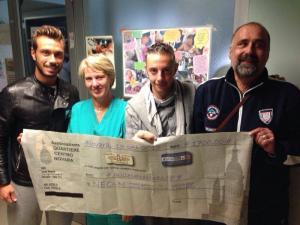 Novara - Con Marco Rigoni testimonial d'eccezione, il cavalier Ciaramella, presidente dell'Associazione Quartiere Centro di Novara, ha consegnato a Neo-n Neonati A Rischio 1.700 euro, ricavato della serata benefica svoltasi al Teatro di Borgomanero venerdì 13 settembre, con la compagnia amatoriale Cmt, Musical Theatre Company, che ha messo in scena il musical "La Mitica Matilde". Neo-n ringrazia l'Associazione Quartiere Centro che ha organizzato con la collaborazione di Micro Novara e il patrocinio della Provincia di Novara, il Comune di Borgomanero, Aou Maggiore della Carità di Novara. E grazie a chi, godendosi un bello spettacolo a teatro, ha fatto del bene contribuendo generosamente al nostro progetto per l'acquisto della Ret-Cam per la terapia intensiva neonatale dell'Ospedale Maggiore.