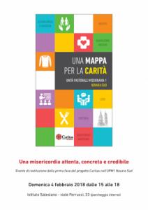 Novara - Domenica 4 febbraio l’Unità Pastorale Missionaria 1 - Novara Sud, presso l’Istituto Salesiano in viale Ferrucci 33, vivrà dalle 15 alle 18 una tappa importante del progetto “Una mappa per la carità”iniziato nel settembre 2017 grazie alla collaborazione della Caritas diocesana e ai Fondi dell'Ottoper Mille della CEI. Il progetto è partito dall’analisi dei servizi erogati dalle realtà caritative legate ai contesti parrocchiali già presenti sul territorio e dall’ascolto delle comunità del Sacro Cuore, Sacra Famiglia, San Francesco, Torrion Quartara e Centro città. Negli scorsi mesi sono stati intervistati un centinaio di persone tra volontari e utenti dei servizi, sono stati compilati 1255 questionari grazie alla partecipazione dei parrocchiani e sono stati raccolti i dati di una trentina di realtà che lavorano a sostegno delle persone in situazione di fragilità.