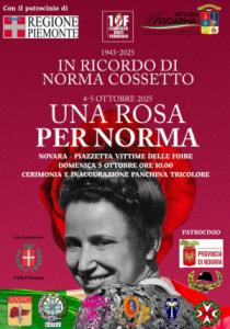 Novara - nell'ambito dell'evento "Una rosa per Norma Cossetto" in Provincia di Novara giunto alla sua settima edizione, comunico i primi appuntamenti della manifestazione patriottica in ricordo della Medaglia d’Oro al Valor Civile Norma Cossetto nell’anniversario del suo sacrificio per l’Italia: