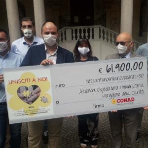 Novara - La solidarietà ha un cuore grande e da buoni frutti come testimonia il risultato raggiunto attraverso la campagna solidale di raccolta fondi “Unisciti a Noi” ideata da Conad Nord Ovest, dai suoi Soci e collaboratori dei punti di vendita. In poco meno di un mese, grazie anche alla generosità di 6.400 clienti, è stato possibile raggiungere ben 61.900 euro da destinare a sostegno dell’Azienda ospedaliero-universitaria di Novara, in prima linea sul territorio durante nell’emergenza sanitaria da Covid 19. Nello specifico, i fondi sono stati destinati all’acquisto di quanto ritenuto necessario nella struttura ospedaliera, tra cui i dispositivi di protezione individuale per medici e infermieri, i prodotti per la sanificazione e igienizzazione, medicinali e attrezzature sanitarie indispensabili.
