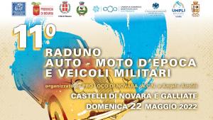 Novara - Domenica 22 Maggio presso il cortile del Castello Visconteo - Sforzesco di Novara, si terrà l'11° raduno di auto e moto d'epoca e veicoli militari Le auto sosteranno al Castello di Novara dal momento dell'iscrizione (a partire dalle 8) fino alle 12.30, poi vi sarà il giro per la città e dopo un percorso di circa 7/10 km è prevista la sosta nella piazza del Castello di Galliate Per gli iscritti sono stati previsti ingressi omaggio alla Galleria Giannoni di Novara, la visita è effettuabile dalle 10 alle 19. Le visite alla Cupola di Novara potranno essere prenotate con una quota scontata di € 10 a persona da prenotare al momento dell'iscrizione e fino al raggiungimento posti disponibili effettuabile nel turno delle 9.30. La quota di iscrizione per partecipare al raduno è di € 30,00 comprensiva di colazione e pranzo.