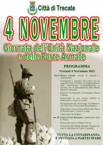 Trecate - La Città di Trecate ha reso noto il programma stilato per la ricorrenza del 4 novembre, Giorno dell'Unità Nazionale e Giornata delle Forze Armate. Alle 9 è previsto, in piazza Cavour, il ritrovo di autorità e associazioni, seguito dalla formazione e della partenza del corteo con le autorità civili e militari, le rappresentanze delle associazioni combattentistiche e d’Arma e con la partecipazione della Banda musicale trecatese. Il corteo percorrerà via Matteotti e via Macallé fino a raggiungere piazza Cattaneo, dove verrà depostauna corona d’alloro al monumento con l’Onore ai Caduti. Si proseguirà quindi lungo via Mameli e via Volta fino al Parco delle Rimembranze, per deporre una seconda corona d’alloro alla chiesa di San Bernardo, con l’Onore ai Caduti, seguito dall’allocuzione del sindaco Federico Binatti.