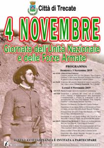 Trecate - In occasione della Giornata dell’Unità nazionale e delle Forze armate, il Comune di Trecate organizza, domenica 3 novembre alle 15.30 nella chiesa di San Francesco, il concerto del Coro Voci Bianche “Don Gregorio Gambino” e della Banda Musicale Trecatese; le esecuzioni saranno intervallate da brevi letture di guerra a cura di Margherita Lodroni Galassi. Al termine dell’evento, l’Associazione Nazionale Alpini offrirà un rinfresco all’Oratorio femminile. La mattinata di lunedì 4 novembre sarà dedicata alla celebrazione solenne: alle 9.15 le autorità e le associazioni si ritroveranno in piazza Cavour per poi formare il corteo che, attraverso via Matteotti e via Macallè, si recherà in piazza Cattaneo per rendere omaggio ai Caduti con la deposizione di una corona d’alloro e l’esecuzione di alcuni brani da parte della Banda Musicale Trecatese. Si proseguirà quindi lungo via Mameli e via Volta fino al Parco delle Rimembranze : qui verrà deposta una corona d’alloro alla Chiesa di San Bernardo e si terrà l’allocuzione del Sindaco. Alle 10.15 nella Chiesa di San Bernardo verrà celebrata la Messa con la partecipazione del Coro Voci Bianche “Don Gregorio Gambino” diretto dalla professoressa Gabriella Grassi. Al termine si ritornerà in piazza Cavour dove la Banda musicale trecatese eseguirà alcuni brani (in caso di maltempo il concerto si terrà nel Teatro comunale).