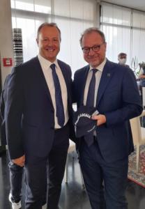 Cerano - Giovedì 23 settembre in occasione della visita nel capoluogo ed in altre zone del territorio novarese da parte del Sottosegretario di Stato alla Difesa Giorgio Mulè, la Polizia Locale di Cerano ha voluto omaggiarlo con un berretto di ordinanza. "Con il Sottosegretario - sottolinea il vice sindaco di Cerano, Alessandro Albanese - abbiamo potuto confrontarci anche su come oggigiorno in realtà come la nostra sia fondamentale la sinergia tra la stessa Polizia Locale, chiamata sempre più a svolgere compiti propri delle Forze dell'ordine, ed i reparti territoriali dell'Arma dei Carabinieri, avendo l'obiettivo di garantire con la maggior efficacia possibile la sicurezza dei cittadini".