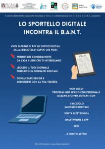 Nel mese di aprile saranno aperti al pubblico gli sportelli digitali in alcuni comuni del Sistema bibliotecario BANT, secondo le date e gli orari indicati:
