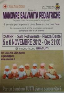 Cameri - Torna a Cameri, grazie al Comune e al comitato locale di Galliate della Croce Rossa Italiana, un corso gratuito di due giorni di manovre salvavita pediatriche che si terrá presso la sala polivalente di piazza Dante i prossimi 5 e 6 novembre. La cultura del PBLS (pediatric basic life support) è l'insieme delle tecniche rianimatorie da attivare su bambini di etá compresa tra gli 0 e i 14 anni in caso di incoscienza, arresto respiratorio o arresto cardiaco.