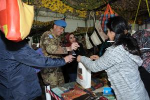 Bellinzago Novarese - Shama (Libano) 09 novembre 2016. Il Sector West di Unifil ha ospitato oggi, nella base “Millevoi” di Shama, le cooperative femminili del Libano del Sud. Le imprenditrici locali hanno esposto i loro prodotti artigianali in un’apposita area messa a loro disposizione dal Contingente italiano. L’attività, organizzata dal Civil Affaire di Unifil in coordinazione con la Cellula di Cooperazione Civile e Militare del Sector West, ha voluto offrire alla nascente imprenditoria femminile libanese, l’occasione di far conoscere i propri prodotti ai caschi blu che operano nell’area. Ad aprire l’esposizione è stato il generale Ugo Cillo, comandante del Settore, che ha sottolineato l’importanza della giornata e dei successi, sempre più crescenti, che le imprese femminili stanno avendo nel Libano meridionale. Tale risultato, ha sottolineato il generale Cillo, è dovuto anche grazie ai risultati conseguiti dalla Risoluzione 1701 che prevede, fra i compiti, il supporto alla popolazione locale. L’area espositiva, allestita con temi natalizi, è stata realizzata dai militari del Combat Support Service Battalion attualmente a guida reggimento logistico “Pozzuolo del Friuli”. L’attuale missione in Libano è affidata alla Brigata di cavalleria “Pozzuolo del Friuli”, al suo quinto mandato nella terra dei cedri.