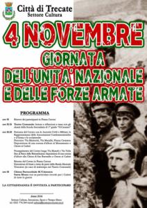 Trecate - Venerdì 4 Novembre la Città di Trecate celebrerà, come ogni anno, la Giornata dell’Unità Nazionale e delle Forze Armate. Il ritrovo dei partecipanti è previsto alle ore 10.00 in Piazza Cavour e sarà seguito da un momento di riflessione con gli alunni della scuola Secondaria di 1° grado “G. Cassano”, presso il Teatro comunale. Successivamente, si terrà il tradizionale corteo con le Autorità Civili e Militari, le Rappresentanze delle Associazioni Combattentistiche e d’Arma e le scolaresche. Gli eventi commemorativi proseguiranno domenica 6 novembre con l’iniziativa “I profughi della grande guerra a Trecate”: alle ore 11.00, presso la sala di rappresentanza del Comune, verranno accolte le delegazioni di Brentonico e Colle Santa Lucia, seguirà corteo al Monumento ai Caduti di piazza Cattaneo e , alle ore 15.00, presso l’Asilo Infantile “F.lli Russi”, la conferenza sul tema relazionata dalla Signora Margherita Lodroni Galassi, figlia di Reduce nonché presidente dell’Associazione Combattenti e Reduci di Trecate.