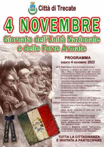 Trecate - La Città di Trecate celebrerà il prossimo 4 novembre la Giornata dell’Unità nazionale e delle Forze armate, ricorrenza alla quale la cittadinanza è invitata a partecipare. L’appuntamento per le autorità civili e militari e le associazioni combattentistiche e d’Arma è alle 9 in piazza Cavour, dove si formerà e partirà il corteo, accompagnato dalla Banda musicale trecatese e il coro “Don Gambino”, che percorrerò via Mazzini verso il parco delle Rimembranze per deporre la corona d’alloro davanti alla chiesa di San Bernardo in onore dei caduti. Il corteo proseguirà quindi passando per via Mazzini, via Volta e via Mameli per raggiungere piazza Cattaneo con la deposizione della corona d’alloro al monumento ai Caduti. Qui il sindaco Federico Binatti terrà l’allocuzione. Alle 10, nella chiesa di San Rocco, sarà celebrata la messa animata dal coro “Don Gambino”, che terrà un momento musicale anche al termine della funzione religiosa. Il corteo tornerà, passando da via Macallè e via Matteotti, in piazza Cavour, dove ci sarà l’esecuzione di alcuni brani a cura della Banda musicale trecatese.