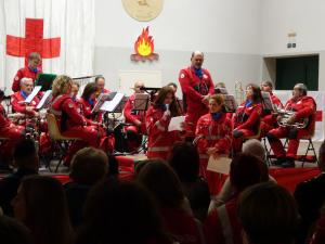 Il primo atto del programma è andato in scena sabato sera a Romentino, presso l’ex-cinema dell’Oratorio gentilmente messo a disposizione da Don Luigi, dove si è eccezionalmente esibita la Fanfara Nazionale di Croce Rossa, giunta per l’occasione da Torino con una trentina di musicisti volontari diretti dal maestro Giovanni Fant. E’ stato un concerto magico, un viaggio armonioso introdotto dall’inno di Croce Rossa, impreziosito da melodie leggendarie come “La vita è bella” di Nicola Piovani e quindi concluso con l’esecuzione dell’Inno di Mameli e tutti i volontari schierati dinnanzi alla platea. Musica da pelle d’oca, come i pensieri e le dediche rivolti agli amici prematuramente scomparsi, e poi ancora tanti foulard azzurri distribuiti come segno concreto di solidarietà e di ottimismo.