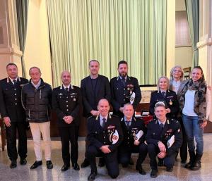 Trecate - Sono cinque e tutti in forza al Comando di Polizia locale di Trecate gli ufficiali e gli agenti del Novarese che hanno ricevuto il riconoscimento dalla Regione Piemonte per essersi distinti in azioni di servizio. Si tratta del commissario Barbara Ferrari, dell’agente scelto Francesco Passarelli, dell’agente scelto Pier Andrea Piol, dell’ispettore Luca Tarantola e del comandante Pier Zanatto, ai quali nella mattinata di venerdì 20 gennaio, il sindaco Federico Binatti ha consegnato una medaglia durante la cerimonia organizzata nel teatro comunale alla presenza del comandante della Compagnia dei Carabinieri di Novara tenente colonnello Camillo Di Bernardo e del comandante della Stazione dei Carabinieri di Trecate maresciallo Giovanni Ferrara.