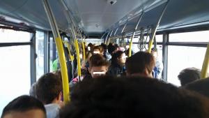Nell'immagine scattata oggi, mercoledì 4 novembre alle ore 14.15 sulla linea Scolastica dell'8 proveniente da Novara. Ma sono ragazzi, sardine o... animali da macello?