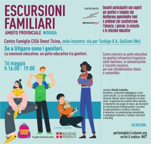 Le Escursioni familiari sono un progetto finanziato dalla Regione Piemonte e consistono in incontri partecipativi con esperti per genitori e famiglie che desiderano approfondire temi e problemi che caratterizzano l’infanzia, i giovani, la crescita e le relazioni educative.