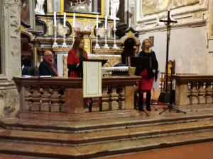 Successo anche dell'appuntamento che si è tenuto nella serata del 26 novembre, nella chiesa di San Francesco. "La Schola Cantorum "San Gregorio Magno" e il maestro Mauro Trombetta hanno proposto un concerto-evento intitolato "Amore Morte” di e con Gianni Dal Bello e Anna Belfiore, con la partecipazione del mezzosoprano Giorgia Gazzola e del pianista Alberto Sala, alternando il repertorio musicale, che ha visto l’esecuzione del “Lacrimosa” di Wolfgang Amadeus Mozart, il “Dolce è sentire” di Riz Ortolani, il “Lamentamini” di Giacomo Carissimi, “No potho reposare” dei Tazenda, il “Mater mater in Paradisum” di Lorenzo Perosi e il “Coro di donne” di Riccardo Zandonai, con momenti di lettura e riflessione attraverso i quali sono stati raccontati ai presenti alcuni dei più noti femminicidi della storia. Oltre alla finalità benefica dell’iniziativa, che i protagonisti hanno immediatamente sposato per sostenere a loro volta il Centro Anti Violenza di Novara,va sottolineato l’altissimo livello culturale e l’opportunità per la nostra città. Grazie dunque alla nostra Schola cantorum, al suo direttore, agli autori e attori e ai musicisti, con i quali è sempre un piacere collaborare e condividere progetti. Grazie anche – commentano a conclusione il sindaco, il vicesindaco e il consigliere – al personale dei nostri uffici comunali, che ha lavorato per l’organizzazione di tutte queste iniziative".