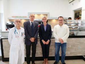 Galliate - Per la prima volta, la sede di Galliate dell’azienda ospedaliero-universitaria ha un suo servizio di caffetteria, che è stato inaugurato questa mattina alla presenza del sindaco di Galliate Davide Ferrari, del direttore sanitario dell’Aou di Novara dott. Giovanni Sacco, e di tutti i responsabili delle strutture sanitarie operanti a Galliate. Dopo aver ampliato l’offerta di servizi sanitari, con l’apertura del Centro di procreazione assistita (il secondo in Piemonte) e la struttura semplice di Dermatologia e Venereologia, l’azienda ospedaliero-sanitaria di Novara ha puntato l’attenzione sul miglioramento dell’accoglienza, non solo i ricoverati e i loro familiari ma anche tutti gli operatori della sede di Galliate. E’ sempre mancato un punto di ristoro all’interno del “San Rocco” e anche nei dintorni dell’ospedale galliatese non c’erano bar, il che creava non pochi disagi. Così è stato bandito un concorso (al quale hanno partecipato quattro società) che è stato vinto dalla ditta Mdm di Novara: l’aggiudicazione è per i prossimi tre anni.