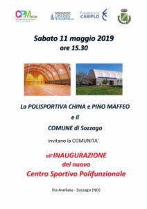 Sozzago - Inaugurazione della Nuova palestra polifunzionale per la Bassa Novarese e Ovest Ticino sabato 11 maggio alle 15.30 in via Avellata a Sozzago. Si tratta di un progetto importante e prezioso per l'area, frutto della collaborazione di una fitta Rete di donatori e realizzato grazie al sostegno di Fondazione Comunità Novarese e Fondazione Cariplo. Il progetto, promosso da ASD Polisportiva Sociale China e Pino Maffeo Onlus di Cerano, è finalizzato alla realizzazione di una nuova palestra polifunzionale per lo svolgimento di attività motorie/sportive/fisiche adatte anche a forme di disabilità, oltre che di attività culturali, educative, formative, ricreative e di aggregazione sociale. Più in generale, l'obiettivo è di offrire ai territori di Novara e dei Comuni della Bassa Novarese/Ovest Ticino, una struttura che, mediante un'azione di collegamento e coordinamento tra i servizi sociali, educativi e scolastici di più territori, possa ospitare attività che si proprongano di ridurre e prevenire varie forme di disagio sociale.