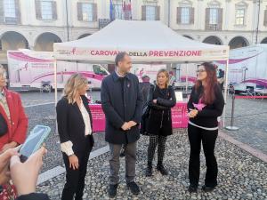 Trecate - Ottimo riscontro (con un tutto esaurito rispetto alle disponbilità) per l’iniziativa “La Carovana della Prevenzione”, programma nazionale itinerante di promozione della salute di “Komen Italia”, organizzazione basata sul volontariato in prima linea nella lotta ai tumori del seno e che offre a un pubblico sempre più ampio attività gratuite di sensibilizzazione e prevenzione delle principali patologie oncologiche di genere, che si tenuta nella giornata di venerdì 18 novembre, su organizzazione, appunto, di “Komen Italia” con la collaborazione della raffineria “Sarpom” e con il patrocinio della Città di Trecate per una giornata di promozione della salute, con visite specialistiche gratuite per la prevenzione dei tumori del seno riservate alle trecatesi non inserite nelle liste di screening della Regione Piemonte. Dalle 10.30 alle 17.30, in piazza Cavour, sono state posizionate le unità mobili a bordo delle quali sono stati effettuate mammografie per le donne di età compresa fra i 40 e i 45 anni e over 75 ed ecografie senologiche per le under 40. "Particolare soddisfazione e gratitudine per l’attenzione riservata alla comunità femminile trecatese" sono state espresse dal sindaco Federico Binatti, presente insieme con il vicesindaco Rossano Canetta, l’assessore Fortunata Patrizia Dattrino, il presidente del Consiglio comunale Giorgio Ingold, i consiglieri comunali Giuseppe Acciardi, Mauro Bricco, Michela Cigolini, Mattia Felicetta, Tiziana Napoli e Vincenzo Salerno e la responsabile del Settore Servizi sociali Laura Varani.