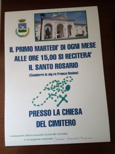 Trecate - Si avvisa la cittadinanza che la recita del Santo Rosario del primo giovedì ogni mese è stata spostato al primo martedì di ogni mese, sempre alle ore 15 presso la Chiesa del Cimitero. La Consigliera Incaricata, Dattrino Fortunata, con i componenti della Consulta del cimitero augurano una Buona Pasqua a tutti i Trecatesi.