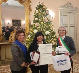 Trecate - Una trecatese è tra i nuovi sette cavalieri al merito della Repubblica italiana: si tratta di Marina Rabellotti, storica dipendente della Prefettura di Novara, alla quale la prestigiosa onorificenza è stata consegnata durante la cerimonia che si è tenuta nel pomeriggio di ieri, 15 dicembre, nel salone d’onore della Prefettura. Per l’occasione Marina Rabellotti è stata festeggiata anche dall’Amministrazione comunale, rappresentata dall’assessore Fortunata Patrizia Dattrino, che sottolinea "il meritato riconoscimento per il lavoro svolto da anni in seno all’Ufficio del Governo a favore dei cittadini. Proprio per questo motivo abbiamo voluto omaggiarla donandole due volumi sulla sua città di appartenenza e il “Dolce Trecate”".