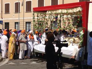 Trecate - Una processione colorata, gioiosa e che sicuramente non è passata inosservata quella che ha avuto luogo nel torrido pomeriggio di sabato 27 luglio. Almeno un migliaio di indiani di religione Sikh si sono dati appuntamento a Trecate nel loro abituale punto di ritrovo in corso Roma, nei pressi del Mercatone Uno, dove in un ampio capannone si ritrovano abitualmente per i loro riti. Per l'occasione, una particolare ricorrenza della loro religione, una festa paragonabile alla Pasqua o al Natale dei cristiani o alla fine del ramadan per gli islamici, sono arrivati in città da ogni parte del nord Italia. Si è così formato un lungo corteo che dal capannone oltre la tangenziale ha attraversato buona parte di Trecate, passando per corso Roma, via Matteotti, la centralissima piazza Cavour, via Mazzini, via Verdi, quindi pausa in piazza Cattaneo (di fronte all'oratorio) per poi risalire da via San Cassiano e raggiungere di nuovo il capannone in corso Roma per la conclusione della festa Sikh. La vice sindaco Antonella Marchi e l'assessore alla Sicurezza Mario Zeno sottolineano come "questa ricorrenza è stata organizzata e pianificata insieme all'Amministrazione comunale; per questo motivo era presente anche una pattuglia della Polizia locale e la nostra comandante Ivana Medina, oltre alla consigliera delegata all'Integrazione Francesca Costa, che ha portato i saluti agli ospiti provenienti da altre località fuori Trecate. Dopo il passaggio del corteo, c'erano degli addetti che pulivano le strade per non lasciare in giro alcunché. I responsabili della comunità Sikh trecatese li abbiamomo invitati a partecipare alle iniziative legate all'integrazione che organizziamo in Comune".