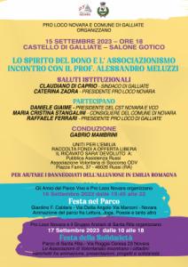 Infine per domenica 17 Settembre dalle 10 alle 18 Pro Loco Novara, il Gruppo Anziani di Santa Rita organizzano la Festa della Solidarietà col supporto della Soc. Coop. Soc. Il Frutteto presso il Parco di Santa Rita in Via Roggia Ceresa 23. Sarà l'occasione per far incontrare Associazioni di Volontariato e cittadini: banchetti fra animazione, presentazioni, progetti e solidarietà.
