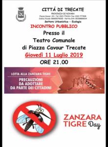 Trecate - Giovedì 11 luglio alle ore 21, nel Teatro comunale di piazza Cavour, l’ufficio Ambiente del Comune di Trecate organizza un incontro pubblico sul tema “Lotta alla zanzara tigre. Precauzioni da adottare da parte dei cittadini”. Michele Massone, esperto dell’Istituto per le Piante da Legno e l'Ambiente - I.P.L.A. S.p.A., società controllata dalla Regione Piemonte, fugherà i dubbi dei presenti, risponderà alle curiosità sul tema e, cosa più importante, dispenserà consigli pratici per non attirare questo insetto pericoloso in quanto veicolo di malattie virali. "Sarà molto importante essere presenti a questa serata in quanto è un tema che tocca tutti e sarà utile scoprire come controllare la diffusione della zanzara tigre", ha dichiarato l’assessore Roberto Minera invitando i trecatesi a partecipare numerosi.