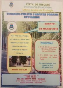 Trecate - Sabato 24 marzo si terrà una giornata ecologica, la seconda promossa dall'assessorato all'Ambiente del Comune di Trecate e dal titolare della delega, Roberto Minera. "Alle 8.30 - spiega - ci ritroviamo presso l’ingresso della Biblioteca Civica (lato Giardini all'Italiana) a Villa Cicogna. Al termine delle operazioni di pulizia, previsto per le ore 12, sarà offerto un ricco buffet presso la biblioteca comunale. In caso di pioggia l'iniziativa sarà rinviata a sabato 7 aprile". Per adesioni e ulteriori informazioni si prega di contattare l’Ufficio Ambiente del Comune entro le ore 12 di martedì 20 marzo (tel. 0321 776356 – 0321 776353).