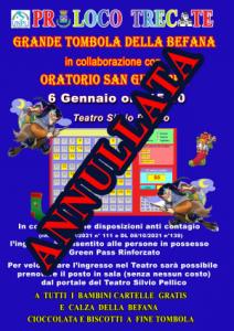Trecate - L'Amministrazione comunale informa che la premiazione dei concorsi "Natale in Vetrina" e "Natale sui Balconi" è stata rinviata al 15 gennaio 2022 per motivi tecnico/organizzativi e avrà luogo alle ore 11,00 presso la Sala di Rappresentanza del Comune di Trecate. Anche la Pro Loco di Trecate ha annunciato l'annullamento di un'importante manifestazione dedicata a grandi e piccoli: la tradizionale Tombolata, in programma al cine-teatro Silvio Pellico in collaborazione con l'Oratorio San Giuseppe nel pomeriggio del 6 gennaio, è stata infatti sospesa.