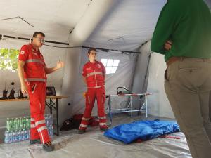 Cameri - Secondo Open Day dell’anno per la CRI Galliate, questa volta a Cameri, ed è stata ancora una volta un’esperienza molto positiva, una splendida giornata di solidarietà e di amicizia all’insegna dei principi fondamentali di Croce Rossa. Domenica scorsa, 15 ottobre, grazie al patrocinio del Comune di Cameri, una trentina di volontari in divisa hanno occupato parte della centralissima Piazza Dante con tende, ambulanze e gazebo per mostrare al pubblico i tanti volti di Croce Rossa e per sostenere la campagna “Tieni viva la nostra voce”, volta a finanziare l’acquisto di nuove radio veicolari per le ambulanze. Dalle 10 del mattino sino al pomeriggio inoltrato, complice la gradevole cornice di sole, visitatori e curiosi hanno potuto incontrare i volontari, osservare gli strumenti di soccorso ed il mini-campo di Protezione Civile, simile a quelli allestiti in occasione dei grandi eventi calamitosi, misurare la pressione arteriosa ed ancora mettersi alla prova quali soccorritori in piccoli scenari critici, grazie all’intervento dei volontari simulatori opportunamente truccati e con la preziosa supervisione degli istruttori CRI, che hanno mostrato le manovre di rianimazione e le tecniche di primo soccorso.