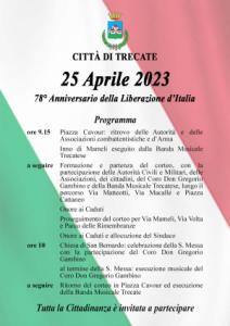 Trecate - L’Amministrazione ha definito il programma per le celebrazioni del prossimo 25 aprile, festa della Liberazione. Alle 9.15, in piazza Cavour, è previsto il ritrovo delle autorità e delle associazioni combattentistiche e d’Arma, con l’esecuzione dell’inno nazionale dalla Banda musicale trecatese. Al termine partirà il corteo, con la partecipazione delle autorità civili e militari, delle associazioni, dei cittadini, del coro “Don Gregorio Gambino” e della Banda musicale trecatese, che percorrerà via Matteotti, via Macallé e piazza Cattaneo per rendere onore al monumento dei Caduti. Sarà quindi percorsa via Mameli, via Volta e per raggiungere il parco delle Rimembranze, dove sarà nuovamente reso onore ai Caduti e si terrà il discorso del sindaco. Alle 10, nella chiesa di San Bernardo, sarà celebrata la messa con la partecipazione del coro “Don Gregorio Gambino”. Al termine della cerimonia religiosa è previsto un momento musicale dello stesso coro, quindi il ritorno del corteo in piazza Cavour e un secondo intervento della Banda musicale trecatese.