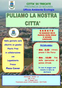Trecate - Torna anche per il mese di maggio l’ormai consueto appuntamento con la giornata ecologica: “Puliamo la nostra città” si terrà sabato 18 maggio dalle ore 8.30 (ritrovo presso il Bio Parco) a mezzogiorno. In piazza Cavour, rinnovando la consolidata collaborazione con Legambiente, negli stessi orari sarà allestito un gazebo Plastic Free. Si potrà aderire all’iniziativa entro il 17 maggio alle 12 prenotandosi all’ufficio Ambiente, sia passando in ufficio durante i consueti orari di apertura, sia telefonando al numero 0321 776353.