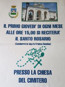 Trecate - La consigliera delegata al cimitero, Patrizia Dattrino, ricorda alla cittadinanza trecatese che giovedì 1° marzo si recita il Santo Rosario presso la Chiesa del Cimitero alle ore 15. Si tratta di un appuntamento che viene proposto ogni primo giovedì del mese ed è a cura della signora Franca Rosina.