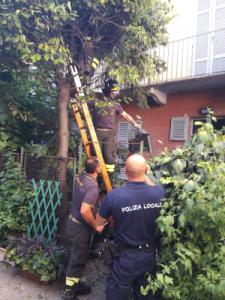 Cerano - Nel tardo pomeriggio di venerdì 19 luglio privati cittadini residenti nella centrale via Gramsci a Cerano allertavano la Polizia Locale dopo aver notato un piccolo gatto che, arrampicatosi su un albero del loro cortile, non riusciva più a scendere. Il personale operante della PL chiedeva il supporto dei Viglili del Fuoco e si recava sul posto; non senza fatica, vista l'altezza dell'albero ed i rami fitti, il piccolo felino è stato recuperato sano e restituito alla legittima proprietaria che nel frattempo si era recata sul posto: una bella storia a lieto fine. "Ringrazio la nostra Polizia Locale per il solerte intervento ed i Vigili del Fuoco di Novara per la professionalità e la sensibilità dimostrate" dichiara l'assessore alla sicurezza Alessandro Albanese presente sul posto.