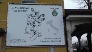 San Martino di Trecate - Nei giorni scorsi, una piacevole novità è apparsa sulla facciata della Ex guardia di Finanza di San Martino di Trecate: un grande pannello celebrativo fa ora bella mostra di sé grazie all’interessamento dell’Associazione Gruppo Giovanile San Martino, che presso questi locali ha la propria sede. “L’idea di installare il pannello– spiega il Signor Roberto Longobardi, presidente del Gruppo Giovanile – è partita dalla nostra associazione con l’intento di dare visibilità alla frazione San Martino, nota prevalentemente per la presenza del polo chimico-industriale, ma che è composta da persone che desiderano vivere appieno il proprio territorio e promuoverne le tradizioni.”
