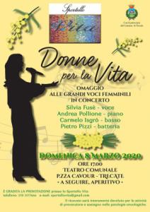 Si ricorda inoltre che è confermato l’evento “Donne per la vita” previsto domenica 8 marzo alle ore 17 in Teatro comunale il cui ricavato sarà interamente devoluto alle attività di prevenzione e sostegno nelle patologie oncologiche. Il concerto-omaggio, dedicato alle grandi voci femminili e patrocinato dal Comune di Trecate, vede protagonisti la cantante Silvia Fusè, il pianista Andrea Pollione, il bassista Carmelo Isgrò e il batterista Pietro Pizzi; al termine verrà offerto un aperitivo.