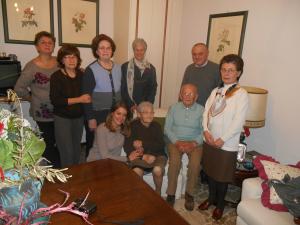 Trecate - Ha compiuto proprio oggi, lunedì 1° dicembre, 100 anni Giuseppina Ferrari, vedova Signoris. A festeggiare la nonnina, ancora molto arzilla, sveglia ed autosufficiente, le figlie Angela e Roberta con amici, parenti e nipoti. Al mattino è passato a trovarla nella sua residenza in via Volta anche il parroco don Ettore Maddalena; al pomeriggio invece è stata la volta della vice sindaco Antonella Marchi. La signora Giuseppina è nata a Novara ed ha trascorso la sua infanzia in una cascina nei pressi di Cerano. Sposatasi con Ruggero, impiegato alla Sarpom, è rimasta vedova a nemmeno 50 anni. Molto devota al Beato Pacifico della sua 'natia' Cerano, Giuseppina nel colloquio avuto con don Ettore ha ricordato con estrema lucidità i due zii: uno era il medico condotto di Trecate e l'altro un sacerdote che divenne segretario del vescovo di Casale Monferrato.