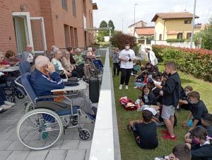 Trecate - Il racconto ricco di emozioni di un gruppo di ospiti della Rsa Il Melograno con sede a Trecate in via Arno: "Sul terrazzino che dalla grande sala ricevimento si affaccia sul prato antistante la struttura aspettiamo la classe 5 A della Rodari, desiderosi di abbeverarci alla vitalità che sgorga dalla gioia di vivere dei bambini. Siamo quasi tutti in carrozzella, abbiamo preso posto accompagnati dalle operatrici, ognuno di noi vivrà questa nuova esperienza secondo la propria sensibilità. E’ bello stare all’aria aperta, vedere la luce del sole nell’azzurro pallido di un cielo sereno dopo l’acquazzone che ieri ci ha fatto temere di non poter realizzare l’incontro che Emanuela ha organizzato. Quanti giorni e mesi abbiamo passato al chiuso, timorosi dell’epidemia, accuditi e protetti dalla Direzione che solo da poco e con mille cautele ha riaperto almeno ai parenti e agli amici! Siamo un po’ ansiosi… Eccoli! Arrivano! Tutti allunghiamo il collo per vederli, aguzziamo gli occhi stanchi, il respiro sembra sospeso… Benvenuti, ciao, sedetevi qui davanti a noi, state all’ombra sulla striscia di prato. I bambini avanzano titubanti, ci guardano con occhi curiosi. Chissà come ci hanno immaginato! Abbiamo avuto con loro soltanto contatti epistolari. Noi li abbiamo pensati come nostri nipoti con i quali condividere confidenze, fiabe, sogni. Ci troviamo di fronte a ragazzini briosi, vivaci, impazienti di parlare con i nonnini. Il ghiaccio è subito rotto, basta qualche parola tra i maestri, Emanuela, le operatrici. Ascoltiamo attenti. Ci vengono offerti colorati fiori di carta, letterine e disegni preparati dai bambini durante le attività didattiche o la pausa mensa, gesti e doni commoventi… poi chiacchiere, simpatici scambi di domande, curiosità reciproche. Riviviamo con loro la vita di scuola, immagini e ricordi lontani rimbalzano nella nostra mente e ci fanno confrontare la scuola di oggi con quella che abbiamo frequentato noi. Abbiamo avuto anche noi la stessa vivacità di questa classe, abbiamo fatto anche noi passeggiate esterne con maestri e maestre, ma ci sorprende la loro confidenza con gli adulti. Per noi, invece, ogni adulto e l’insegnante in special modo era sempre circondato da un alone d’autorità, mai ci saremmo permessi di rivolgerci al maestro in modo diretto, quasi fosse un compagno o un fratello più grande. Ci impressiona vedere insieme italiani e allieve di colore con i capelli divisi e avvolti in tante treccine , occhi scuri mobilissimi su visi ambrati, fisionomie “straniere”. Questa è una classe multietnica nella quale i giovanissimi studenti hanno imparato non solo i rudimenti del sapere, ma anche la convivenza e la condivisione di emozioni, successi, difficoltà. E’ bello ascoltare le loro domande, rispondere alle curiosità, informarsi sulle loro esperienze in un intercalarsi vicendevole di voci, di risate, di sorrisi. E’ bello respirare quest’aria di scuola, rivivere con questi nuovi amici l’atmosfera spensierata della nostra lontana infanzia, risentirci capaci di accettare il diverso, come avviene in questa età bella, quando nulla turba e la fragilità non allontana, ma fa sentire vicini agli altri. Si avvicina l’ora di tornare a scuola, tra applausi e saluti, la 5^ A Rodari si allontana. A noi rimane nel cuore il loro arrivederci per le strade di Trecate. A nostra volta auguriamo buona strada, ragazzi! Noi rimaniamo qui".
