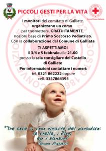 Galliate - Una grande iniziativa per la sicurezza dei nostri bambini, per la serenità delle nostre famiglie, per il bene dell'intera comunità. Sboccia a Galliate “Piccoli gesti per la vita”, il corso gratuito di primo soccorso pediatrico organizzato dal Comitato Locale di Croce Rossa Italiana con la preziosa collaborazione del Comune di Galliate: si terrà nelle serate di martedì 3, mercoledì 4 e giovedì 5 febbraio, dalle ore 21, presso la sala consiliare del Castello di Galliate, aperto a mamme, papà, nonni, zii, educatori, chiunque abbia a cuore il benessere dei piccoli angeli della casa e desideri sentirsi pronto nelle situazioni di pericolo. Gli istruttori volontari della Cri di Galliate proporranno un coinvolgente percorso formativo teorico e pratico tra i fondamenti del soccorso pediatrico, dalla rianimazione cardio-polmonare alla disostruzione delle vie aree, mostrando e facendo eseguire in prima persona quei semplici gesti che possono fare la differenza nella vita di tutti i giorni e scongiurare tragedie troppo spesso raccontate dalle cronache nazionali. Piccoli gesti, per cominciare il 2015 con un buon proposito in più. Per informazioni contattare i numeri 0321 862222 e 335 7864393.