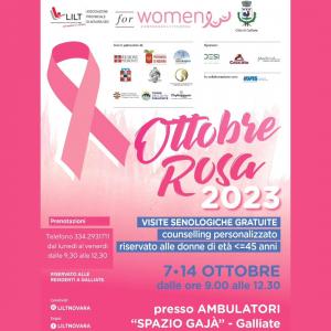 Galliate - Ottobre Rosa a Galliate! Lilt Novara con la delegazione locale guidata da Claudia Masini e in collaborazione con AVIS organizza due mattinate di visite senologiche gratuite con counselling personalizzato riservate alle sole residenti a Galliate con età uguale o inferiore ai 45 anni. Le visite si svolgeranno sabato 7 e 14 ottobre dalle 9 alle 12.30 negli ambulatori dello spazio Gajà in vicolo Antonio Brustio. È necessaria la prenotazione al numero 334 2931711 dal lunedì al venerdì dalle 9.30 alle 12,30. "Si ringraziano gli sponsor Desi Group, Coccato e Mediciva - spiega la dottoressa Giuseppina Gambaro, referente di Lilt Novara, che promuove questa importante iniziativa - Un grande grazie anche ai commercianti che hanno iniziato ad allestire le loro vetrine in rosa e che organizzeranno eventi e raccoglieranno fondi che Lilt Novara utilizzerà per le necessità delle pazienti oncologiche".