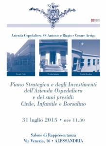 Alessandria - Il direttore Generale dell’Azienda Ospedaliera di Alessandria dottoressa Giovanna Baraldi venerdì 31 luglio a partire dalle 11.30 illustrerà presso il Salone di Rappresentanza ad un pubblico di addetti ai lavori, autorità, associazioni di volontariato, imprese e cittadini, il “Piano Strategico e degli Investimenti dell’Azienda Ospedaliera e dei suoi presidi: Civile, Infantile e Borsalino”. Si tratta di un documento fondamentale a carattere triennale, che specifica la missione dei singoli ospedali Civile, Infantile e Borsalino e gli investimenti necessari per sviluppare il ruolo di riferimento nella rete richiesto dalla Regione.