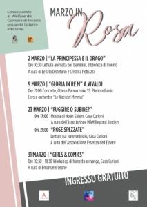 “Siamo lieti di avviare questa nostra 3° edizione della rassegna Marzo in Rosa –ha commentato l’assessore al Welfare Daniele Giaime-, un lavoro di squadra che ha coinvolto la Biblioteca con il presidente Monica Barison, il suo Consiglio e in particolare Mariangela preziosa figura della Biblioteca, l’Associazione Culturale l’Angolo delle Ore con il presidente Mattia Savio e i suoi collaboratori, l’associazione l’Essenza dell’Essere con Fabrizio Sacchi e tutto il suo gruppo di bravissimi attori e per la prima volta anche Elena Cerutti con l’associazione Mam Beyond borders. Risultato meraviglioso di questa rassegna è il lavoro di sinergia, tutti insieme per dedicare il mese di marzo alle donne con tutti gli appuntamenti in calendario e renderle ancora più protagoniste. Il programma è molto vario e ricco, partendo dall’appuntamento dedicato ai più piccoli in biblioteca sempre centrato sulla figura femminile, spaziando nella pittura, musica, teatro e narrativa, con la creazione di fumetti, tutto ad opera di talenti e eccellenze del nostro territorio”.