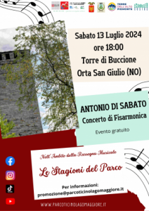 Il programma musicale proposto è stato molto apprezzato sia da abituali fruitori delle aree protette sia da chi si è avvicinato per la prima volta in occasione dei concerti. Spesso sono proprio le aree più vicine a casa che meno si conoscono ed iniziative di questo tipo spingono a scoprire il territorio. Gli eventi che proponiamo puntano proprio a questo perché conoscere è il primo passo per proteggere.” Il primo concerto della stagione 2024 si è svolto in primavera nell'area biellese della Riserva Naturale della Bessa, considerata la più importante miniera d'oro dell'età repubblicana. Il prossimo concerto invece porterà sulla scena le aree protette del Lago d'Orta con un concerto per fisarmonica eseguito da Antonio Di Sabato. L'appuntamento è per sabato 13 luglio alle ore 18:00 presso la Torre di Buccione ad Orta San Giulio.