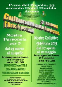 Arona - In Piazza del Popolo 33, accanto Hotel Florida, ad Arona, Lago Maggiore si svolgerà un Evento Artistico denominato “CulturalMente Insieme: L’Arte è per Tutti. 3° Edizione” organizzato da Laboratorio Artistico e Culturale La Fenice con il Patrocinio Città di Arona. Due mostre artistiche, una dopo l’altra, facenti parte dello stesso evento per una grande Festa dell’Arte ad Arona. Si inizia a fine marzo con la Mostra Personale Per Tre, dal 23 marzo al 14 aprile 2019, dove Tre” selezionati artisti, esporranno le loro creazioni: Bruno Greco, Alessandro Martire, Vittorio Vallarin, inaugurazione il 23 marzo alle ore 16.30.