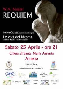 "Il concerto - spiega Massimo Fiocchi Malaspina, direttore artistico de Le voci del Mesma - che ne scaturisce è un Requiem filologicamente corretto, agile e brillante, con grandi contrasti dinamici grazie all'utilizzo degli strumenti antichi, così come da anni avviene nelle più prestigiose sale da concerto e basiliche di tutta Europa. Il pubblico si troverà ad ascoltare dal vivo gli insoliti suoni degli archi con le corde di budello, del corno di bassetto, dei fagotti classici, dei timpani, delle trombe e dei tromboni antichi, e potrà apprezzare come questi strumenti si sposino perfettamente con le voci e quanta energia e vitalità conferiscano alla musica del capolavoro mozartiano. Chi sarà presente il 25 aprile ad Ameno potrà godere della meraviglia della musica di Mozart ascoltandola provenire dai preziosi strumenti per i quali il compositore l'aveva pensata. Questo tipo di esecuzione, ancora rara in Italia, è un evento unico nel territorio novarese. Lo stesso Requiem è stato recentemente eseguito per il Venerdì Santo nella Basilica di San Marco a Milano nell'ambito dei concerti e delle celebrazioni della Settimana Santa della prestigiosa basilica milanese".